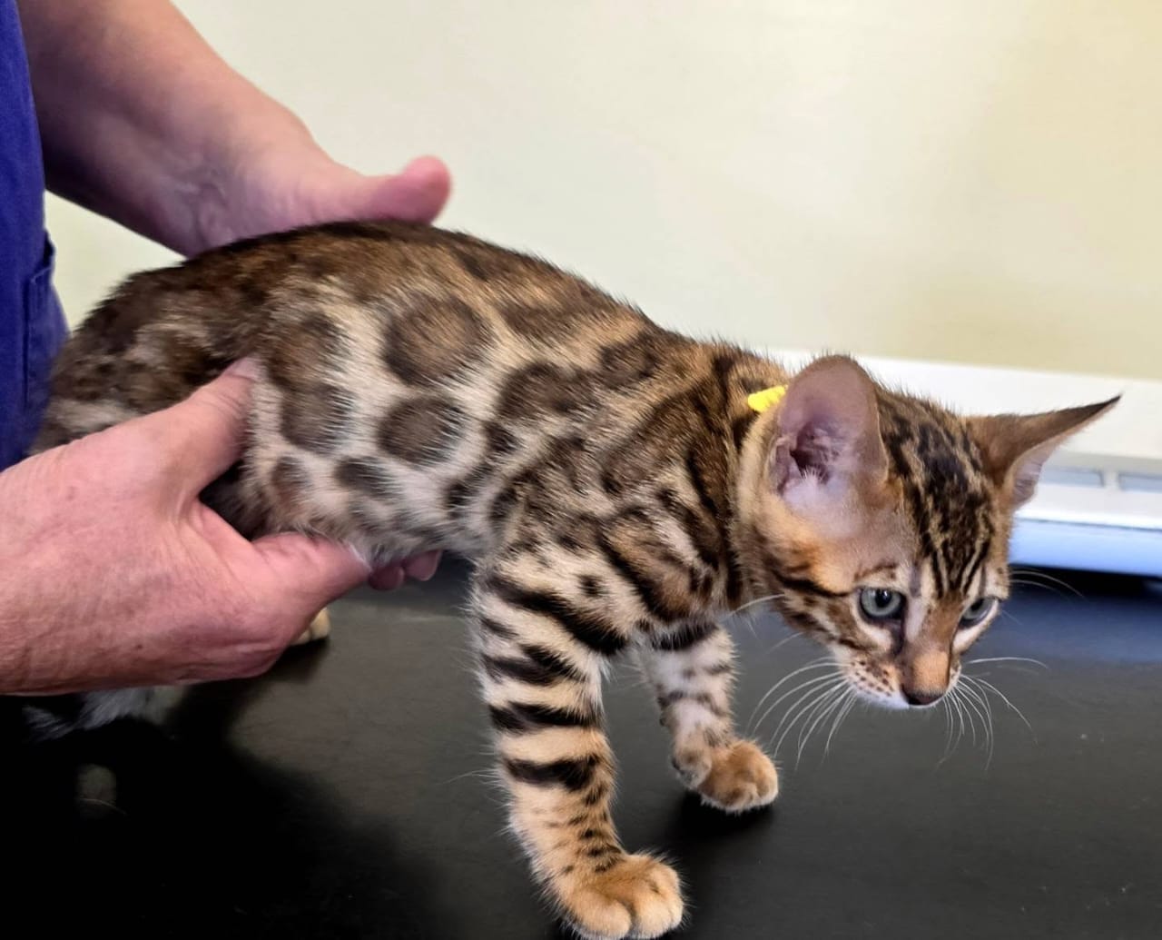 Our Bengal kittens regularly undergo veterinary health exams and have tested negative for genetic diseases such as progressive retinal atrophy (PRA) and pyruvate kinase deficiency (PKDef).